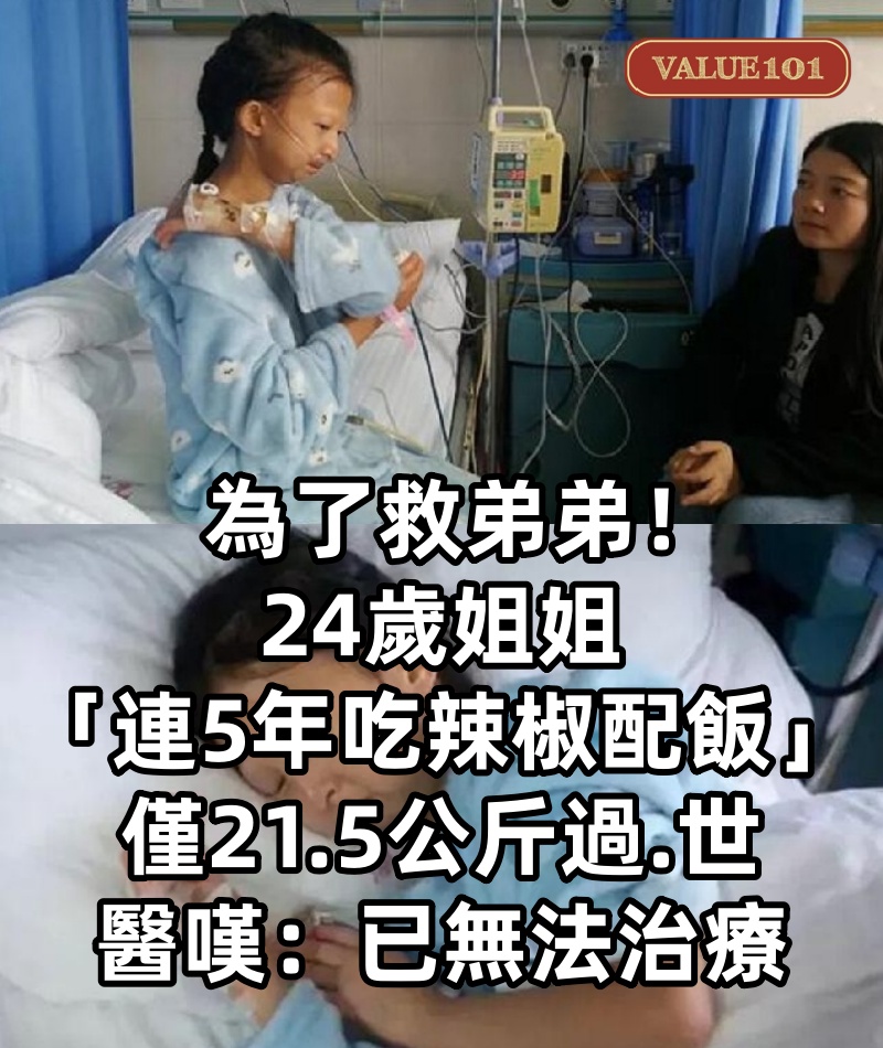 為了救弟弟!24歲姐姐「連5年吃辣椒配飯」僅21.5公斤過.世 醫嘆:「已無法治療」