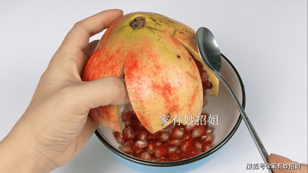 原來石榴要這樣剝!湯匙敲一敲,顆粒瞬間脫落,太省事了