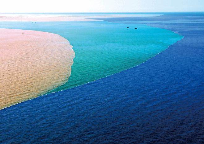 首先便是黃河入海口 。黃河水中由于摻雜了大量的泥沙,又是淡水河,在黃河水匯入大海當的時候,便會出現一條涇渭分明的分界線。與大西洋與太平洋之間分界線的原理相同,二者同樣出現了兩種顏色水融合的奇觀。