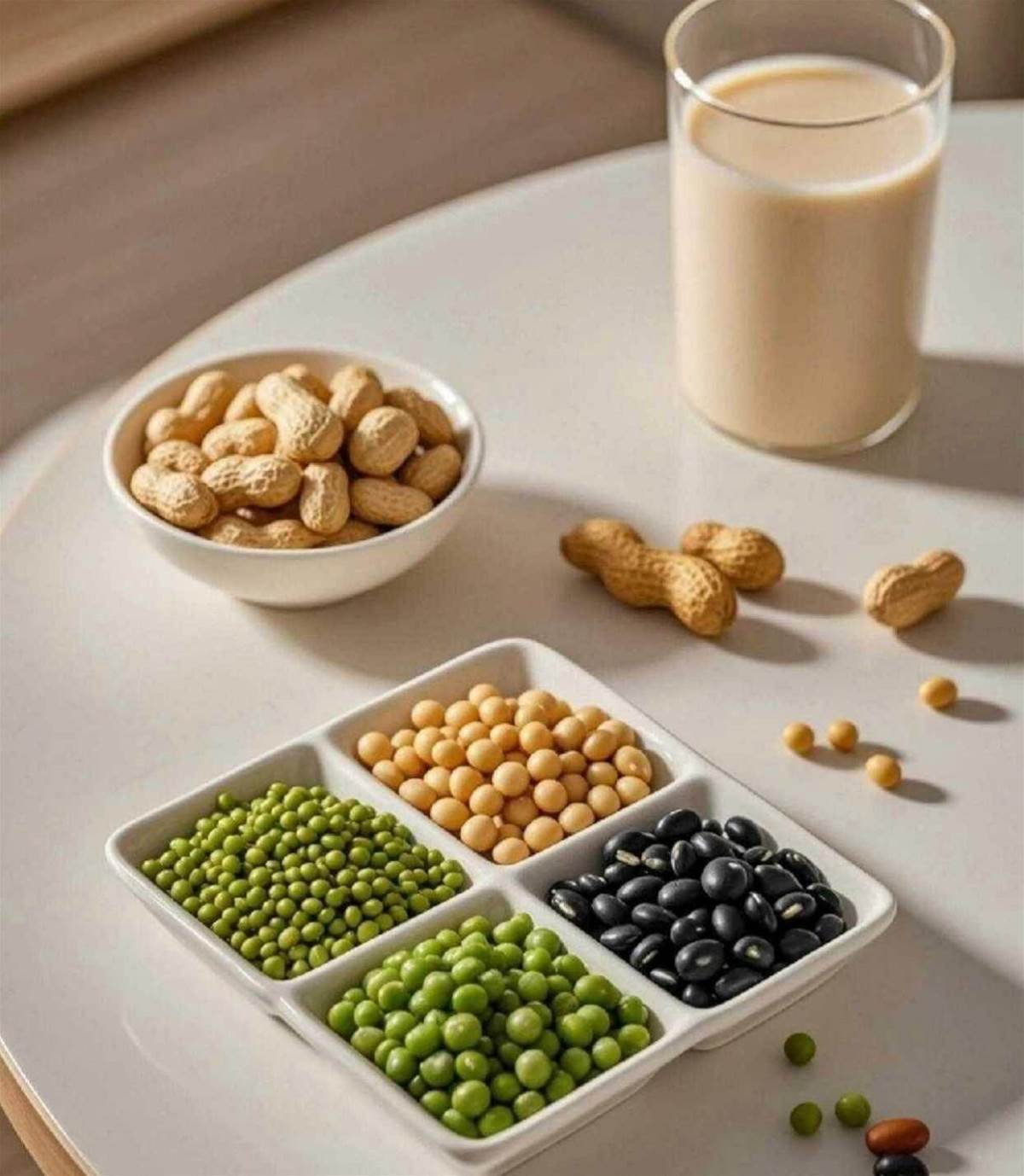 黃豆+花生,能讓蛋白質更好吸收,還能悄悄潤膚。花生裡的優質油脂,會把黃豆蛋白包裹得更細膩,減輕腸胃負擔;花生中的維生素E還能保護這些油脂,順帶滋養皮膚,對皮膚乾燥的人很友好。兩者搭配,還能中和黃豆的生澀味。記住按3:1的比例來,必須用生花生——炒過的花生會讓豆漿變油膩,維生素E也會大量流失。花生皮薄,泡1-2小時就夠了,打出來的豆漿帶著淡淡的花生甜香,細膩順滑,完全不用額外加糖。