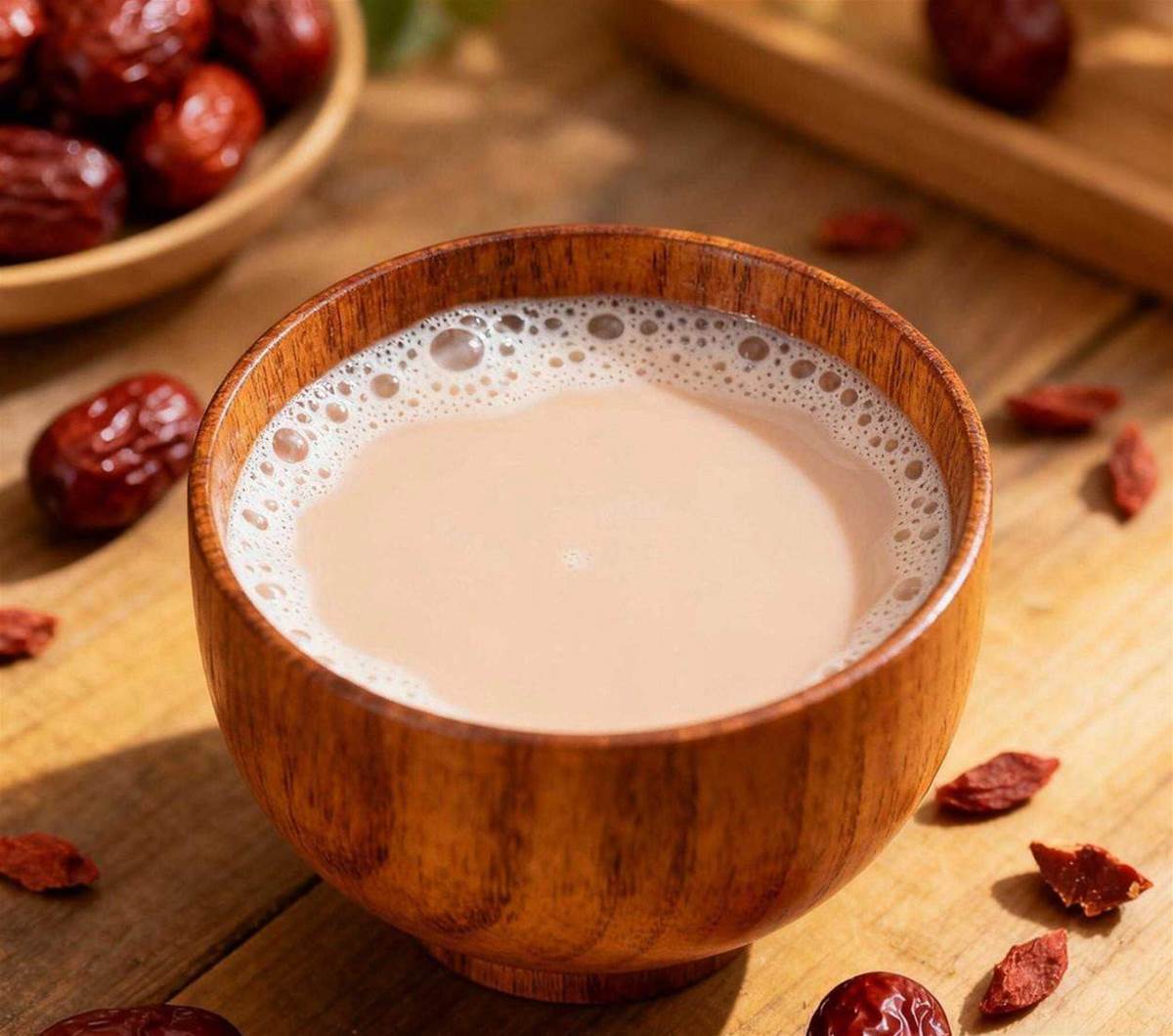 黃豆+紅棗,是補氣血的絕佳組合。黃豆本身含鐵,但這種鐵不太好吸收,紅棗裡的維生素C能把它轉化為易吸收的形式,吸收效率直接翻倍。而且紅棗的天然果糖能中和豆漿的澀味,比加白糖健康多了。按3:1的比例,搭配5顆左右幹紅棗,蜜棗可不行。
