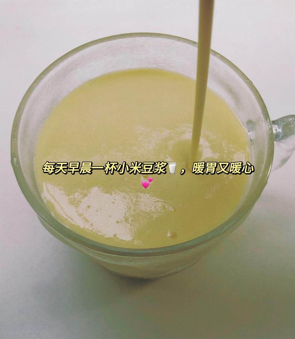 按2:1的比例,新鮮小米和黃豆一起泡2-3小時,打出來的豆漿帶著米香,喝了不會脹肚。