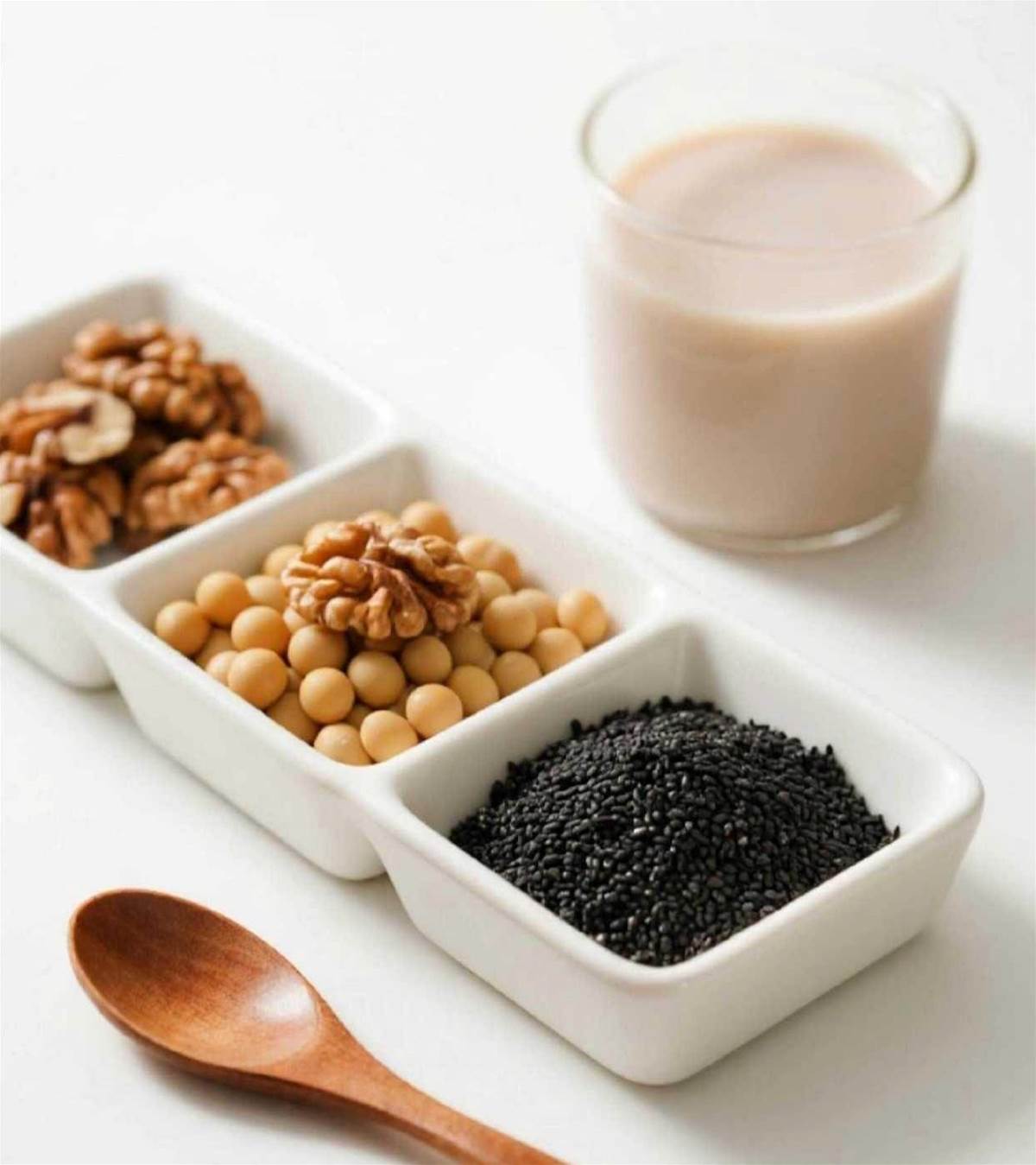 黃豆+芝麻,是冬天的暖心之選。芝麻的濃香能讓豆漿風味更濃郁,不飽和脂肪酸還能讓口感更細膩。注意別放太多,不然會發苦。按5:1的比例,選生黑芝麻,洗乾淨直接打,不用泡。冬天喝一杯熱的,暖胃又暖心,比外面的香精豆漿純多了。