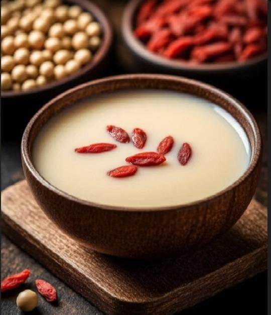 黃豆+枸杞,是熬夜黨的「修復神器」。熬夜傷肝又耗神,枸杞裡的枸杞多糖能修復肝細胞,花青素緩解眼疲勞;黃豆蛋白補充體力,兩者搭配,幫你快速找回精神頭。按10:1的比例,選寧夏枸杞,顆粒飽滿顏色暗紅的才好,直接洗乾淨打,不用泡,淡淡的枸杞香特別療愈。