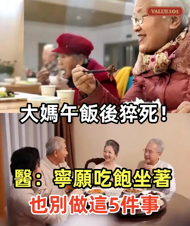 61歲大媽午飯後猝死!醫生:寧願吃飽坐著,也別在飯後做這5件事