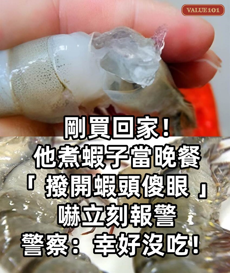 剛買回家!他煮蝦子當晚餐「 撥開蝦頭傻眼 」嚇立刻報警,警察:幸好沒吃!