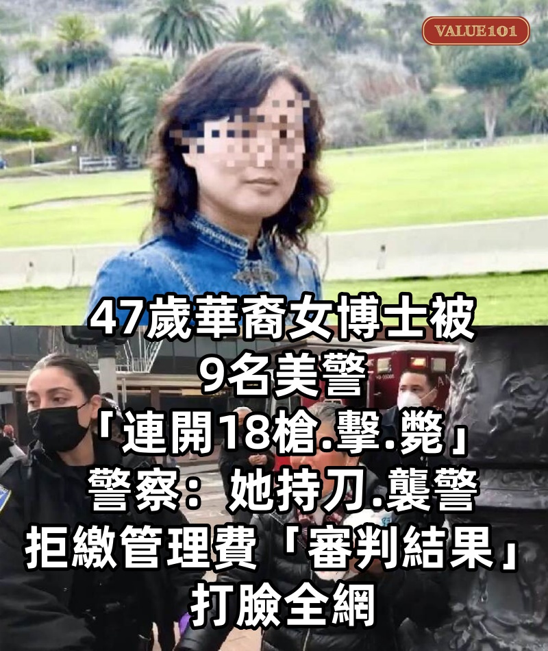 47歲華裔女博士被9名美警「連開18槍.擊.斃」警察:她持刀.襲警拒繳管理費「審判結果」打臉全網