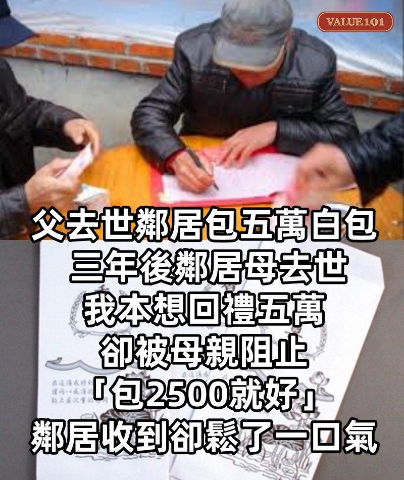 父去世「鄰居包五萬白包」 三年後鄰居母去世,我本想回禮五萬,卻被母親阻止「包2500就好」鄰居收到卻鬆了一口氣