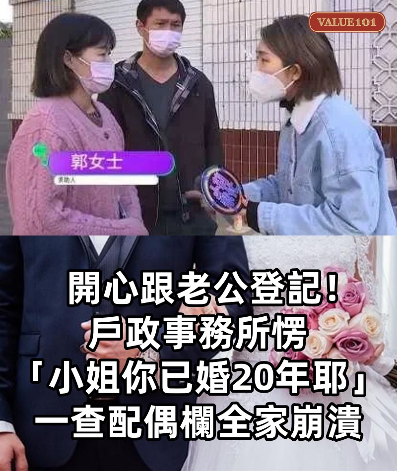 1/6 1/6 開心跟老公登記!戶政事務所愣「小姐你已婚20年耶」………一查配偶欄全家崩潰,真是世界之大『無奇不有。 在這個什麼事情都可能發生的年代,不知道你是否曾聽說過,什麼讓你難以忘懷的新