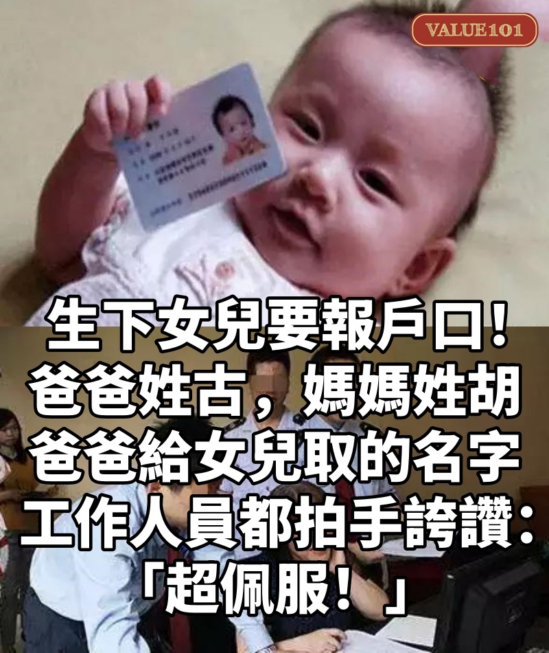 生下女兒要報戶口!爸爸姓古,媽媽姓胡,爸爸給女兒取的名字,工作人員都拍手誇讚:「超佩服!」