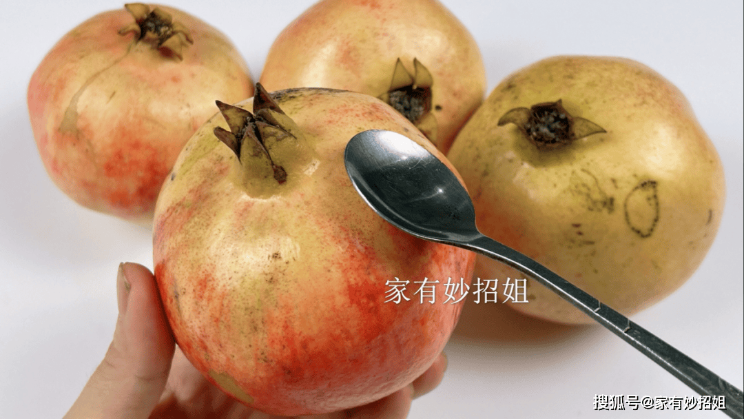 原來石榴要這樣剝!湯匙敲一敲,顆粒瞬間脫落,太省事了