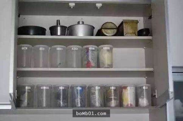 ▼圓柱形的收納盒也很適合收藏調味料。在櫥櫃中排列起來,既整潔,又方便使用,而且還能防蟲防潮!