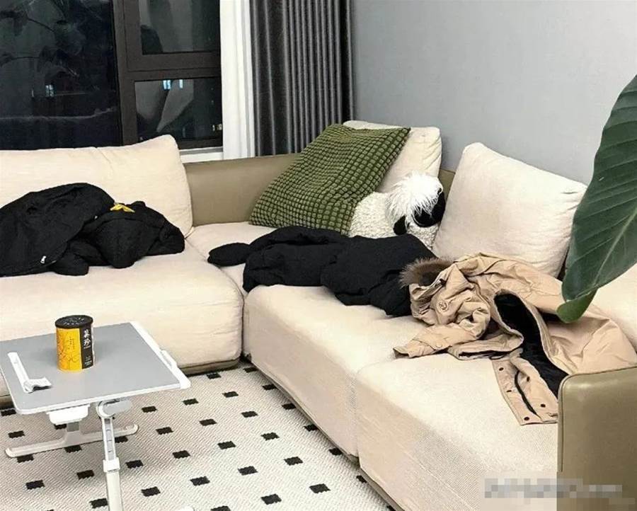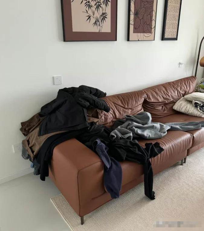 如果一家三口都養成了這樣的習慣,衣服也會被堆成小山,想要坐在沙發上,還需要扒拉扒拉衣服。
