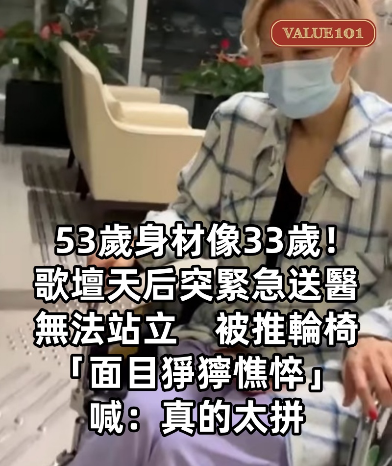 53歲身材像33歲!歌壇天后「突緊急送醫」無法站立 被推輪椅「面目猙獰憔悴」喊:真的太拼