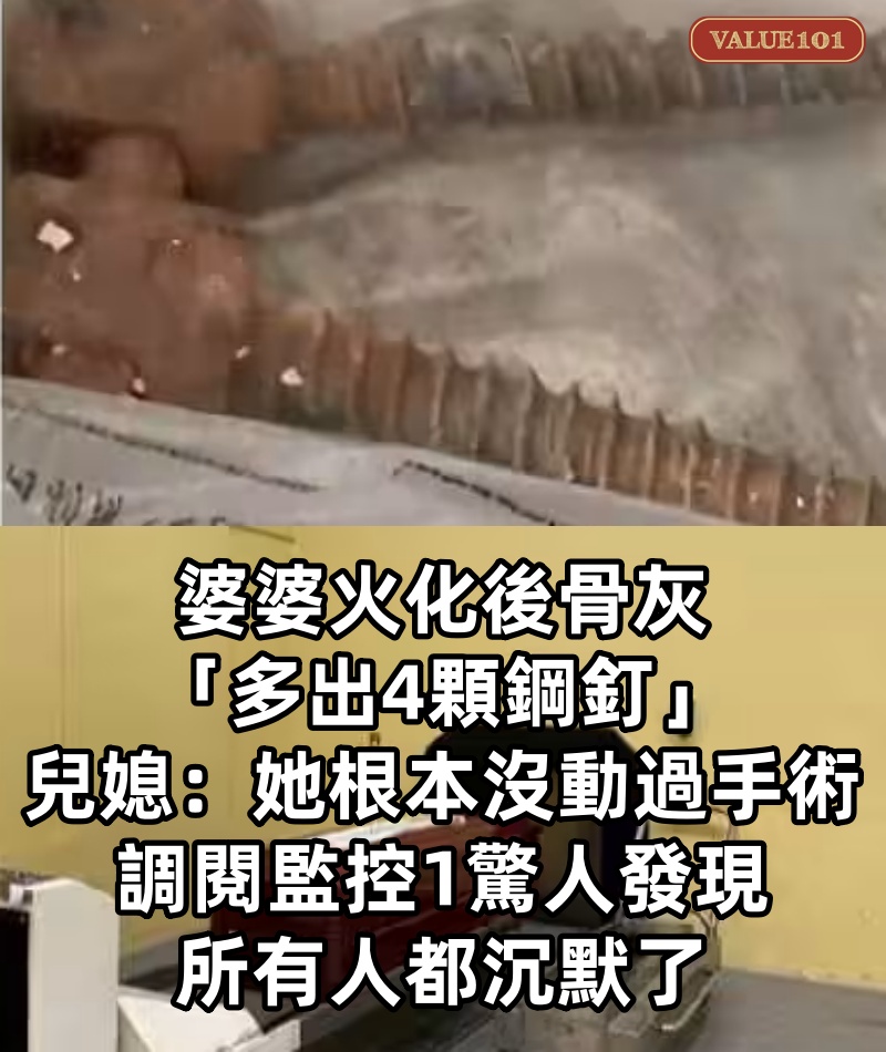 婆婆火化後骨灰「多出4顆鋼釘」,兒媳「她根本沒動過手術」...調閱監控1驚人發現:所有人都沉默了
