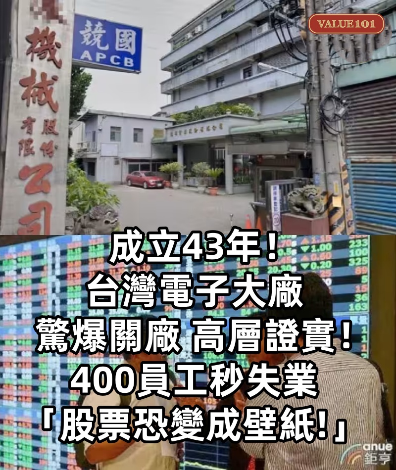 成立43年!台灣電子大廠「驚爆關廠」高層證實!400員工秒失業「股票恐變成壁紙!」