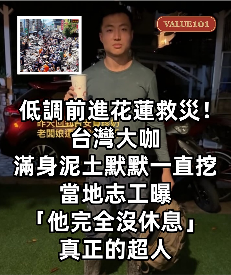 樺加沙颱風為花蓮帶來狂風暴雨,引發馬太鞍溪上游堰塞湖潰堤,不僅衝毀馬太鞍橋,更在當地造成嚴重災情,許多善心民眾紛紛挺身而出,化身「鏟子超人」協助清理家園。其中一名擁有百萬訂閱的台灣網紅也悄悄現身災區,加入志工行列展開救援行動。 根據《TVBS新聞網》、《自由娛樂》報