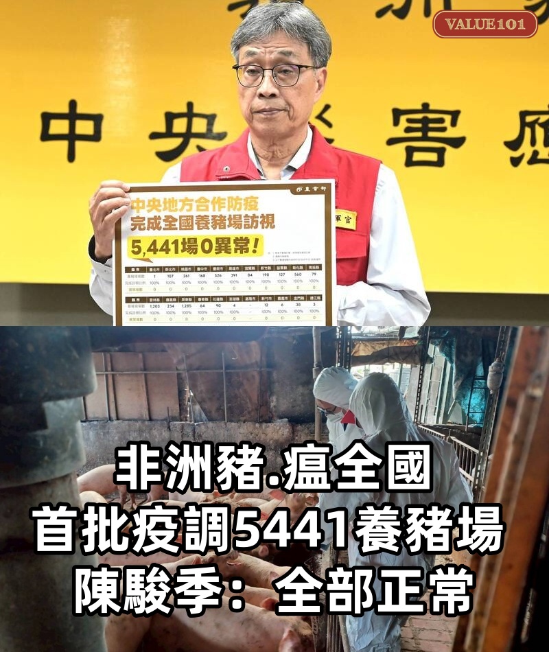 非洲豬.瘟全國首批疫調5441養豬場 陳駿季:全部正常