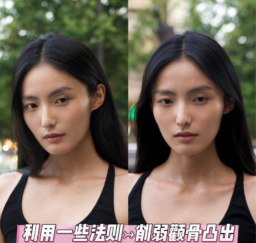 首先第1類的話當然是利用一些妝容工具的,例如像底妝類的產品以及陰影,或者是高光這樣的化妝品元素集合起來在顴骨的位置進行修飾,整體看起來是能夠在視覺上很明顯的優化掉高顴骨的突出感的。尤其是在二三十歲這個階段當中,我們還年輕呢,千萬不要讓自己的顴骨比較具有強調性的給凸顯出來。
